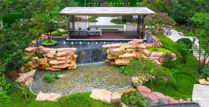 而且,鑫江·瑞府深知,园林是山景的延伸部分,起着至关重要的作用。它是家门口的景观花园,亦是见天地、见自我的精神场域。因此,项目充分考虑山景、宅邸、人居理念,汲取王维《辋川图》精髓,打造华子冈、歆湖、揽胜轩、卧虹桥等瑞府二十景,实现青岛独有的“三苑六巷七园”三重围合园境。山泉--石滩--清溪--叠瀑,搭配不同季节的植被,营造不同意境的主题空间,开启四季山居的乐活之境。